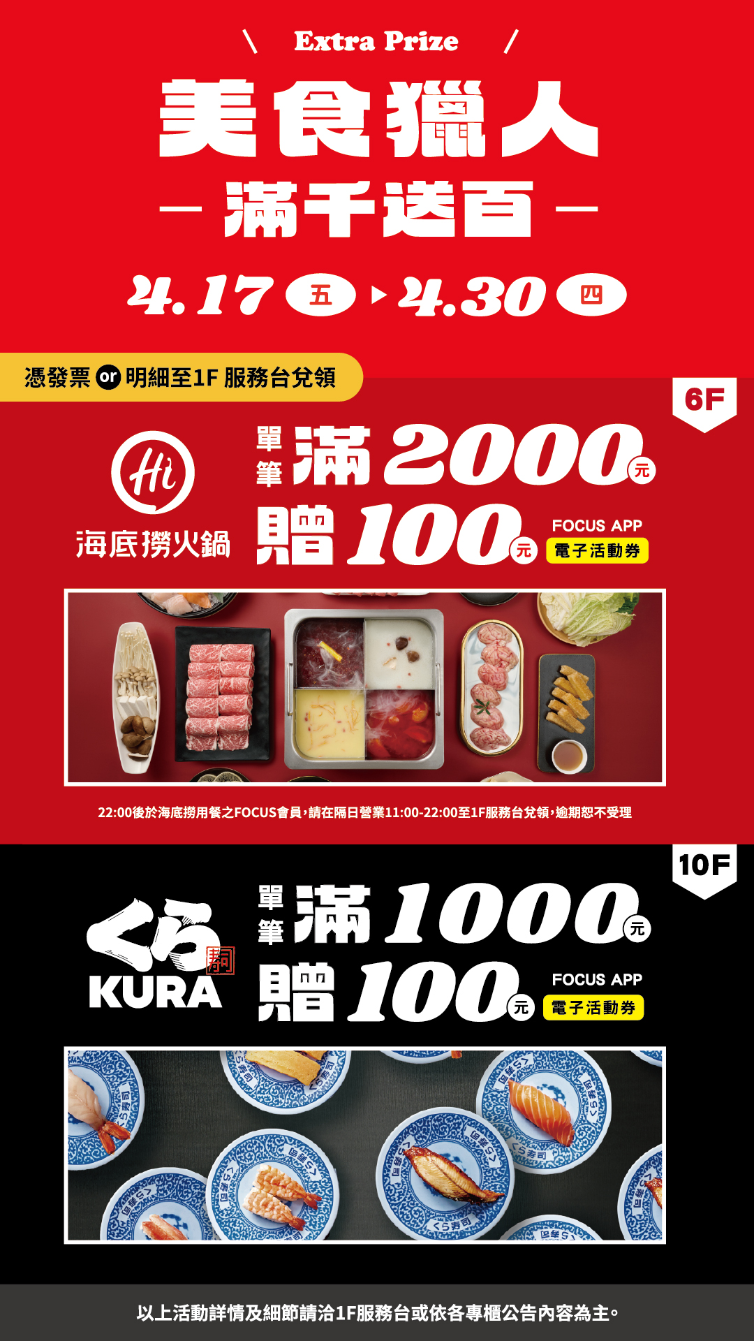 【限時加碼】"全館零售"累積消費滿1000送$100
